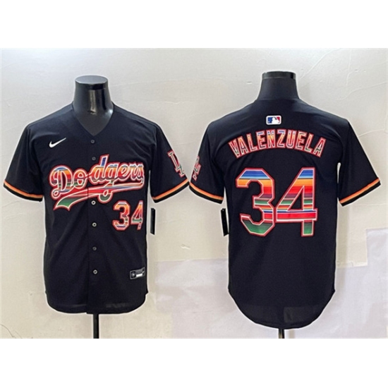Men's Los Angeles Dodgers #34 Fernando Valenzuela Black Mexico Limited Stitched Baseball Jersey