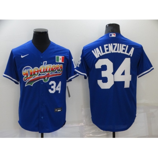 Men's Los Angeles Dodgers #34 Fernando Valenzuela Royal Mexico California Cool Base Stitched Baseball Jersey