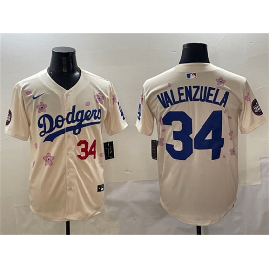 Men's Los Angeles Dodgers #34 Fernando Valenzuela Cream 2025 Tokyo Series Limited Stitched Baseball Jersey