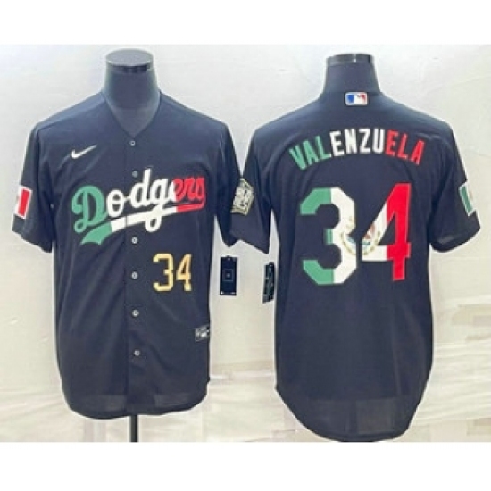 Men's Los Angeles Dodgers #34 Fernando Valenzuela Black Mexico Limited Stitched Baseball Jersey