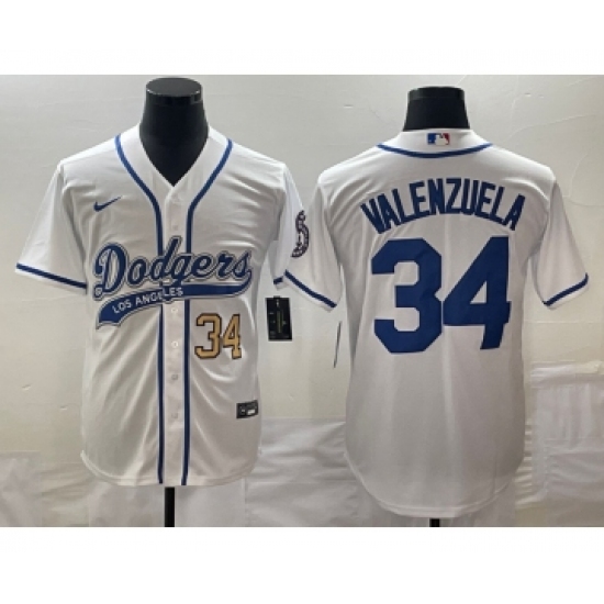 Men's Nike Los Angeles Dodgers #34 Fernando Valenzuela White Throwback Jersey