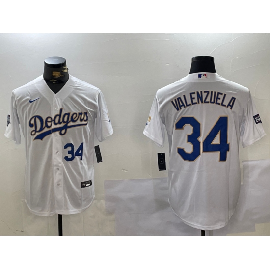 Men's Los Angeles Dodgers #34 Fernando Valenzuela Number White Gold Championship Stitched Cool Base Nike Jerseys