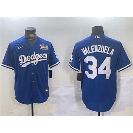 >Men's Los Angeles Dodgers #34 Toro Valenzuela Royal 2024 World Series Cool Base Stitched Baseball Jersey