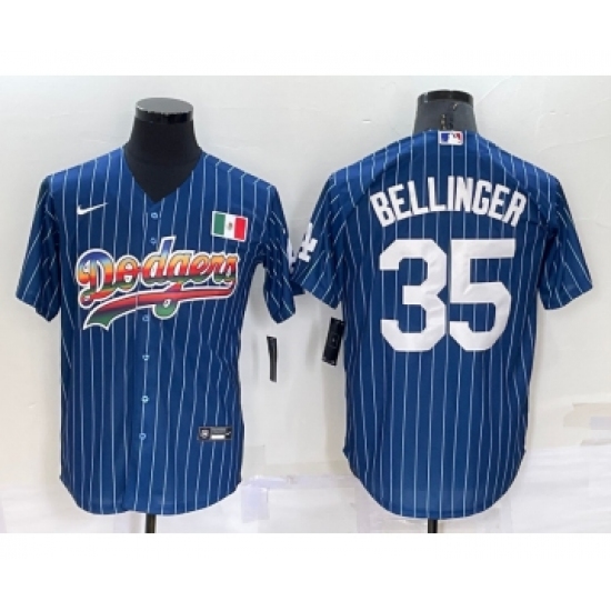 Men's Los Angeles Dodgers #35 Cody Bellinger Rainbow Blue Red Pinstripe Mexico Cool Base Nike Jersey