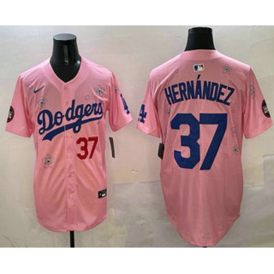 >Men's Los Angeles Dodgers #37 Teoscar Hernandez Pink 2025 Tokyo Series Limited Jersey
