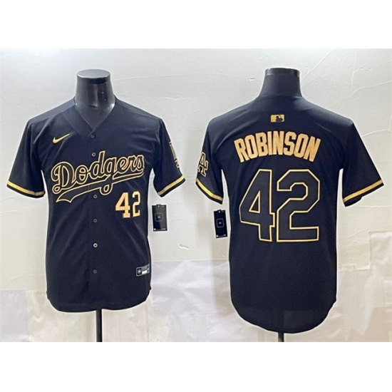Men's Los Angeles Dodgers #42 Jackie Robinson Black Gold Limited Stitched Jersey