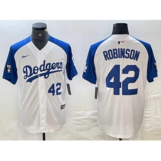 Men's Los Angeles Dodgers #42 Jackie Robinson Number White Blue Fashion Stitched Cool Base Limited Jersey
