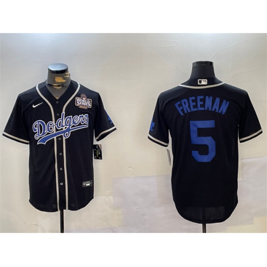 Men's Los Angeles Dodgers #5 Freddie Freeman Black 2024 World Series Cool Base Stitched Baseball Jerseys