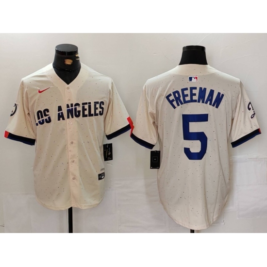 >Men's Los Angeles Dodgers #5 Freddie Freeman Cream 2024 City Connect Limited Stitched Jersey