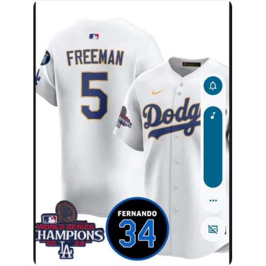 Men's Los Angeles Dodgers #5 Freddie Freeman White 2024 World Series Fernando Memorial Limited Stitched Baseball Jersey