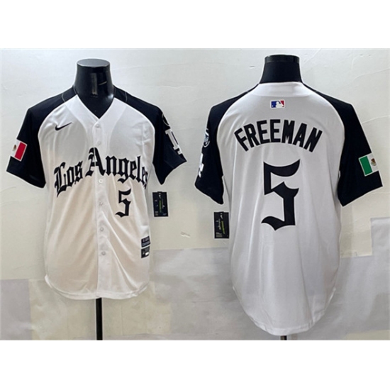 Men's Los Angeles Dodgers #5 Freddie Freeman White Black Mexico 2025 LA Gothic Style With Fernando Vapor Premier Limited Stitched Baseball Jersey