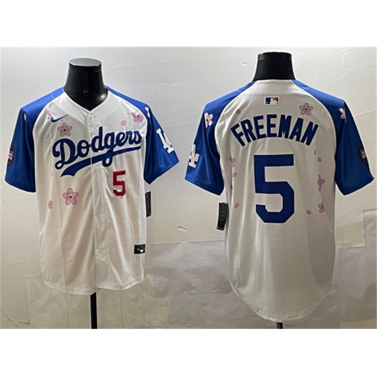 Men's Los Angeles Dodgers #5 Freddie Freeman White Royal 2025 Tokyo Series Limited Stitched Baseball Jersey