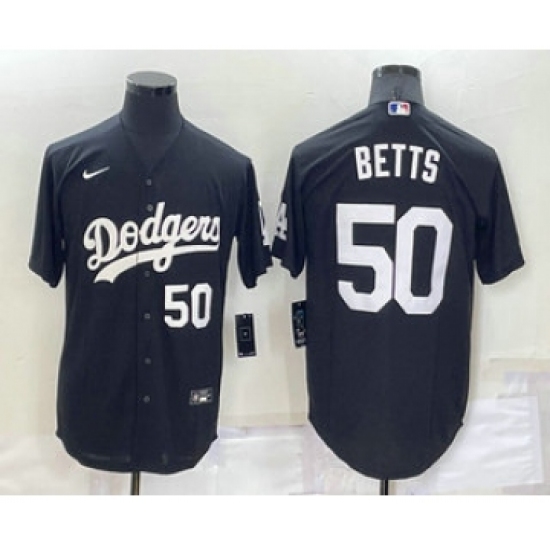 Men's Los Angeles Dodgers #50 Mookie Betts Number Black Turn Back The Clock Stitched Cool Base Jersey