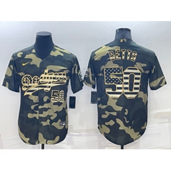 Men's Los Angeles Dodgers #50 Mookie Betts Olive Cool Base Stitched Baseball Jersey