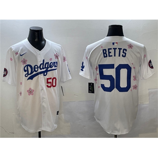 Men's Los Angeles Dodgers #50 Mookie Betts White 2025 Tokyo Series Limited Stitched Baseball Jersey