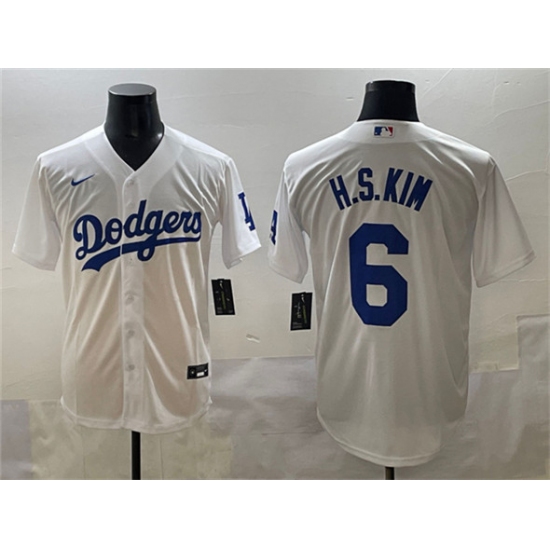 Men's Los Angeles Dodgers #6 H.S.Kim White Cool Base Stitched Baseball Jersey
