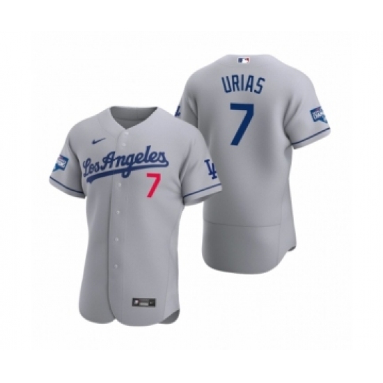 >Men's Los Angeles Dodgers #7 Julio Urias Gray 2020 World Series Champions Road Authentic Jersey