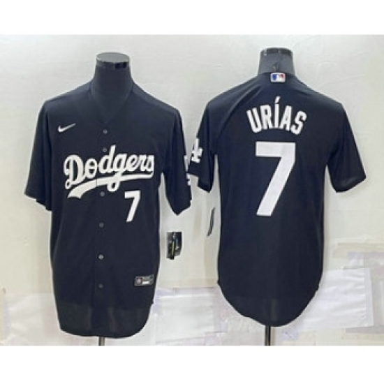>Men's Los Angeles Dodgers #7 Julio Urias Number Black Turn Back The Clock Stitched Cool Base Jersey