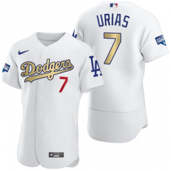 Men's Los Angeles Dodgers #7 Julio Urias White 2020 World Series Champions Replica Jersey