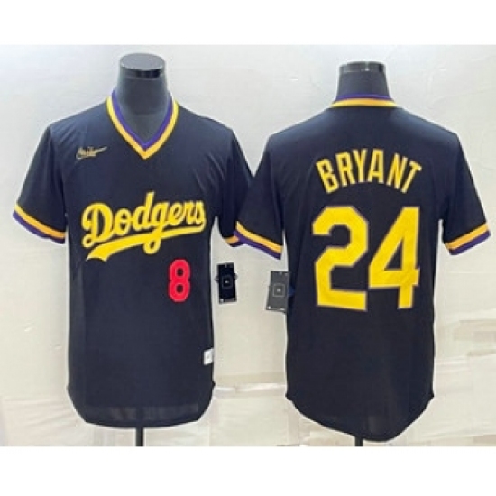 Men's Los Angeles Dodgers #8 #24 Kobe Bryant Number Black Stitched Pullover Throwback Nike Jersey1