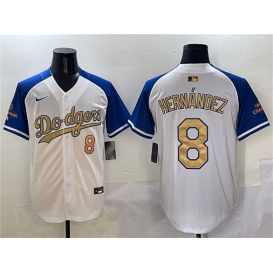 Men's Los Angeles Dodgers #8 Enrique Hernandez White Royal Gold 2024 World Series Champions Vapor Limited Stitched Baseball Jersey