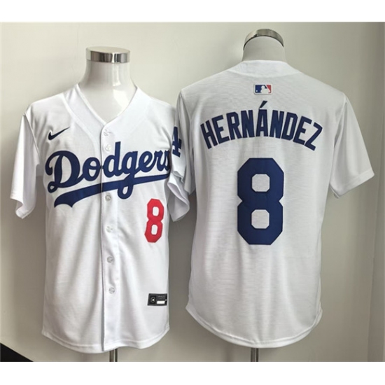 >Men's Los Angeles Dodgers #8 Enrique Hernandez WhiteLimited Stitched Baseball Jersey