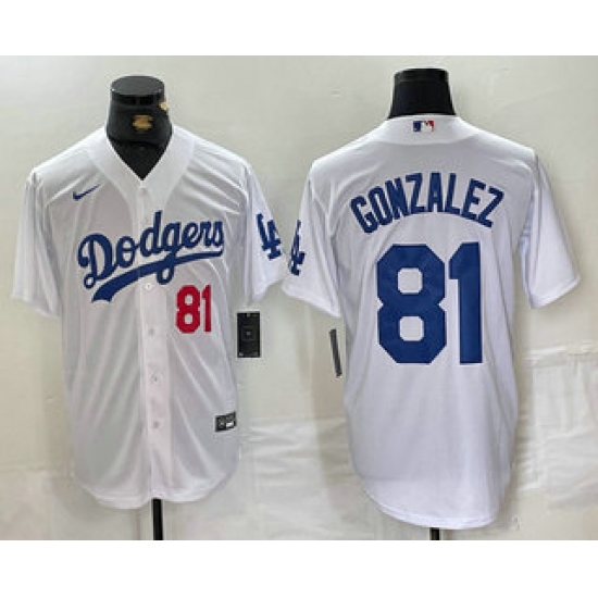 Men's Los Angeles Dodgers #81 Victor Gonzalez Number White Cool Base Stitched Baseball Jersey