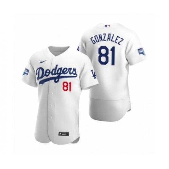 Men's Los Angeles Dodgers #81 Victor Gonzalez White 2020 World Series Authentic Jersey