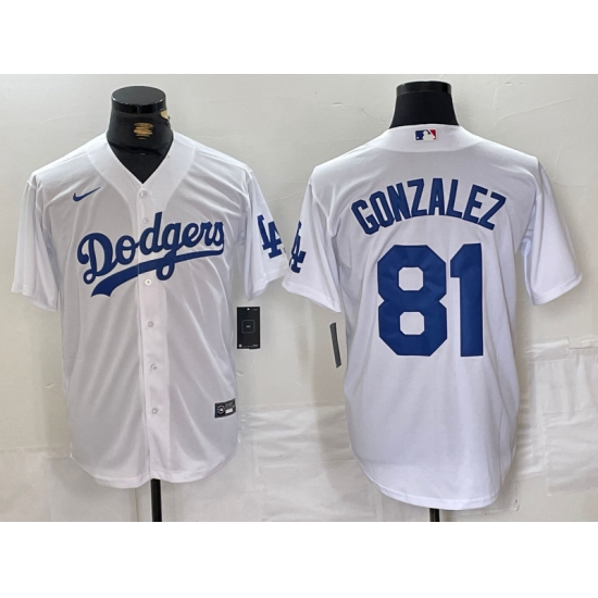 Men's Los Angeles Dodgers #81 Victor Gonzalez Number White Cool Base Stitched Baseball Jersey