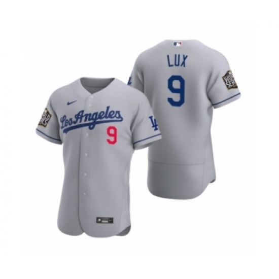 >Men's Los Angeles Dodgers #9 Gavin Lux Nike Gray 2020 World Series Authentic Jersey