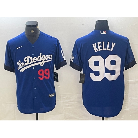 Men's Los Angeles Dodgers #99 Joe Kelly Number Blue 2021 City Connect Cool Base Stitched Jersey