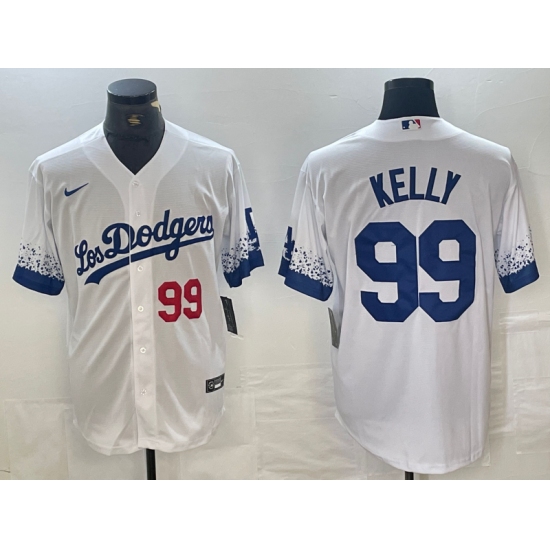 Men's Los Angeles Dodgers #99 Joe Kelly Number White 2021 City Connect Cool Base Stitched Jersey