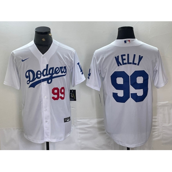 >Men's Los Angeles Dodgers #99 Joe Kelly Number White Stitched Cool Base Nike Jerseys