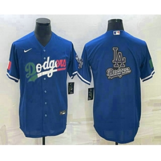 Men's Los Angeles Dodgers Big Logo Blue Flex Base Stitched Baseball Jersey1