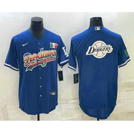 Men's Los Angeles Dodgers Big Logo Rainbow Blue Cool Base Nike Jersey1