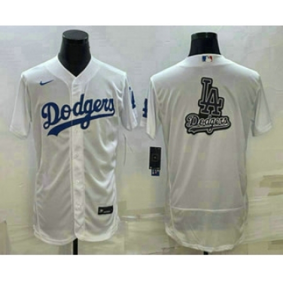 Men's Los Angeles Dodgers Big Logo White Flex Base Stitched Baseball Jersey