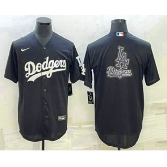 Men's Los Angeles Dodgers Black Team Big Logo Cool Base Stitched Baseball Jersey2