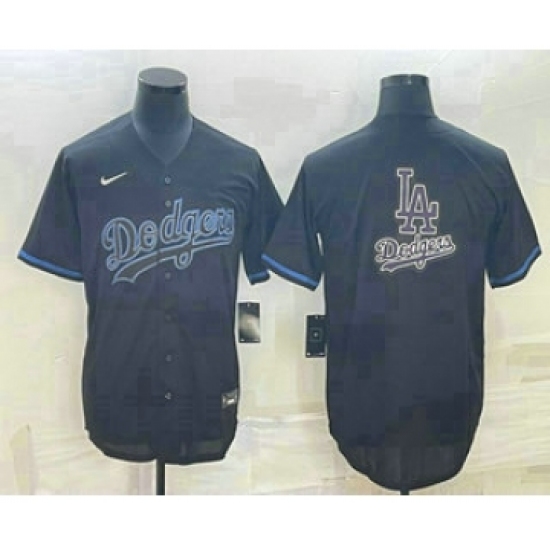 Men's Los Angeles Dodgers Black Team Big Logo Cool Base Stitched Baseball Jersey1