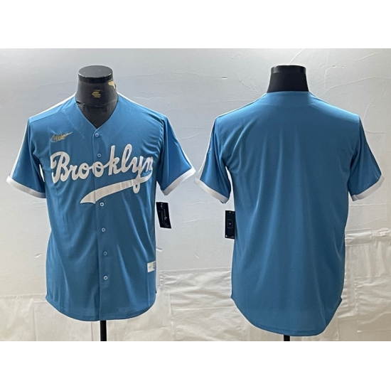 >Men's Los Angeles Dodgers Blank Light Blue Throwback Cool Base Stitched Baseball Jersey