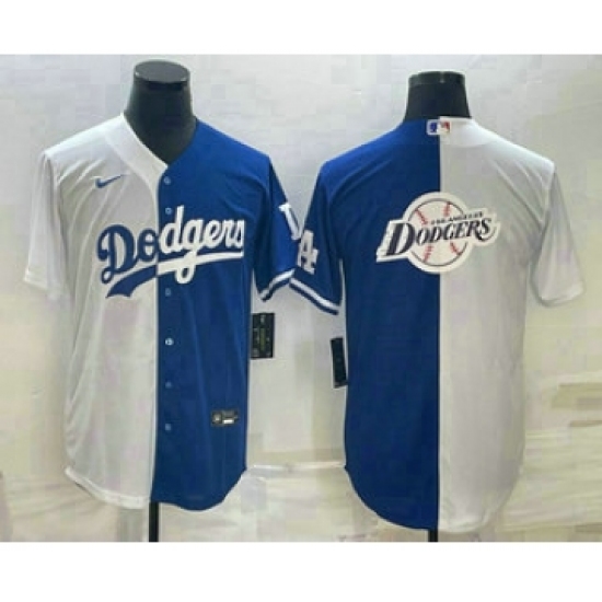 Men's Los Angeles Dodgers White Blue Split Team Big Logo Cool Base Stitched Baseball Jerseys