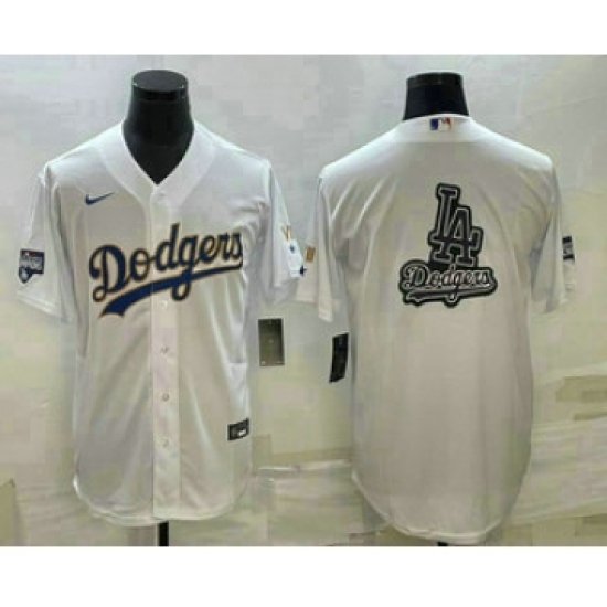 >Men's Los Angeles Dodgers White Team Big Logo Cool Base Stitched Baseball Jersey