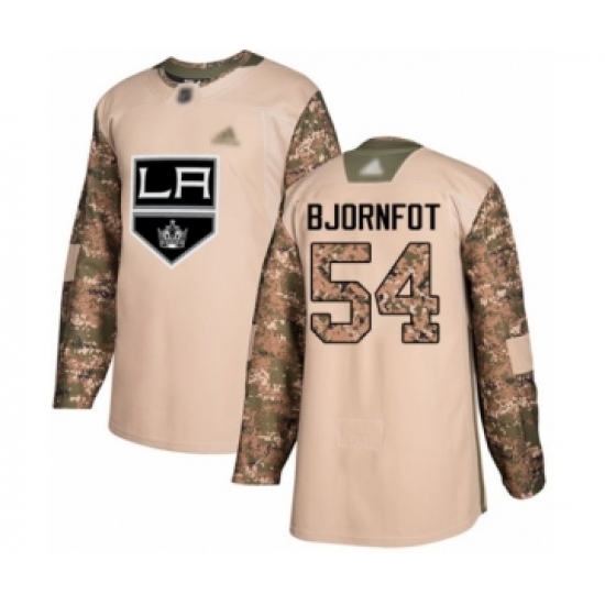 >Men's Los Angeles Kings #54 Tobias Bjornfot Authentic Camo Veterans Day Practice Hockey Jersey