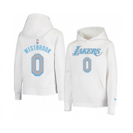 >Men's Los Angeles Lakers #0 Russell Westbrook 2021 White Pullover Basketball Hoodie