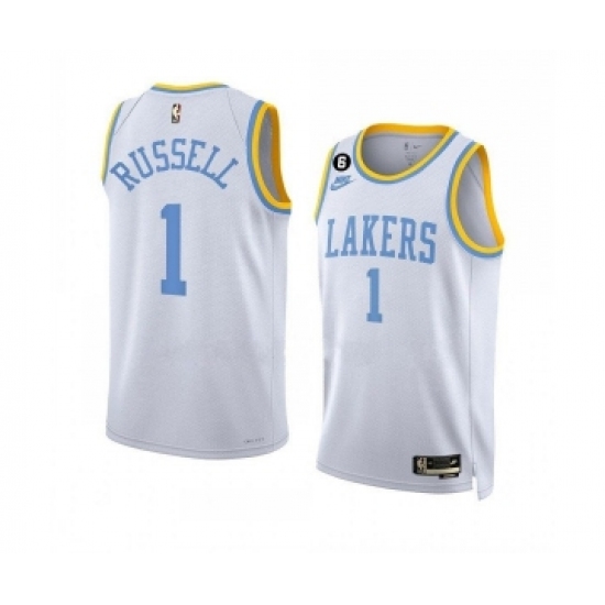 Men's Los Angeles Lakers #1 D’Angelo Russell 2022-23 White Classic Edition With No.6 Stitched Basketball Jersey