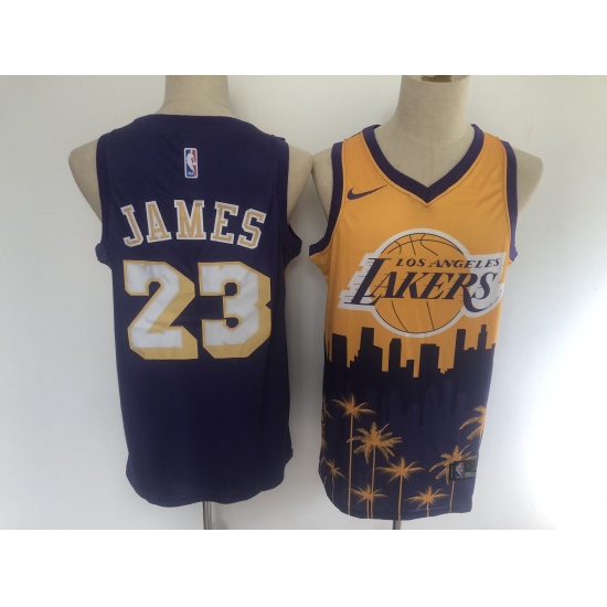 Men's Los Angeles Lakers #23 LeBron James Hardwood Classics Basketball Jersey