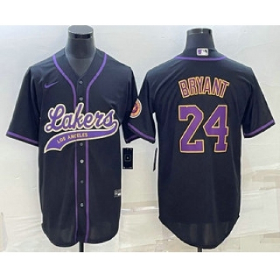 Men's Los Angeles Lakers #24 Kobe Bryant Black With Cool Base Stitched Baseball Jersey