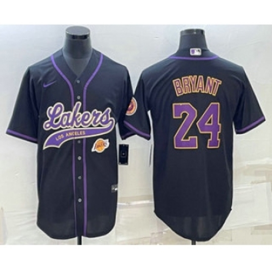 Men's Los Angeles Lakers #24 Kobe Bryant Black With Cool Base Stitched Baseball Jerseys