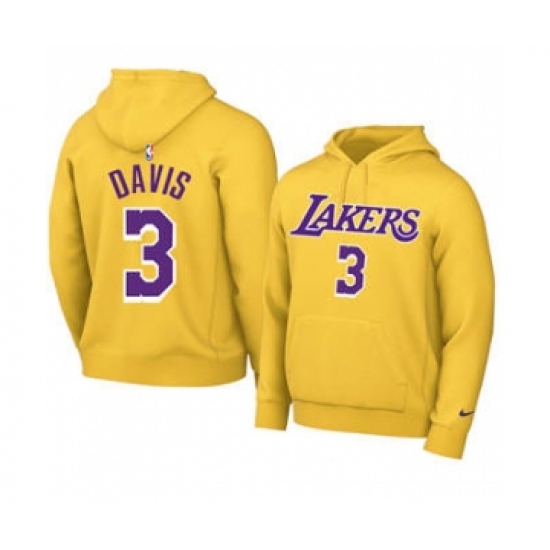 Men's Los Angeles Lakers #3 Anthony Davis 2021 Yellow Pullover Basketball Hoodie