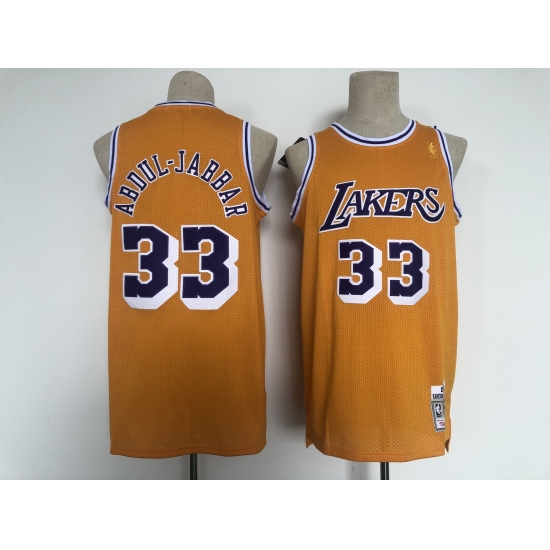 Men's Los Angeles Lakers #33 Kareem Abdul-Jabbar Yellow Throwback Basketball Jersey