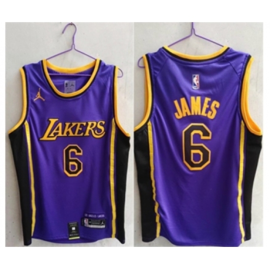 Men's Los Angeles Lakers #6 LeBron James Purple 2022 Jordan AU Stitched Jersey
